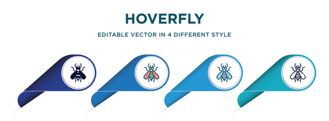 hoverfly icon in 4 different styles such as filled, color, glyph, colorful, lineal color. set of vector for web, mobile, ui