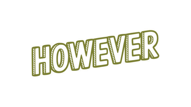 HOWEVER -  Red text on typography background - 3D rendered royalty free stock image. This image can be used for an online website banner ad or a print postcard.