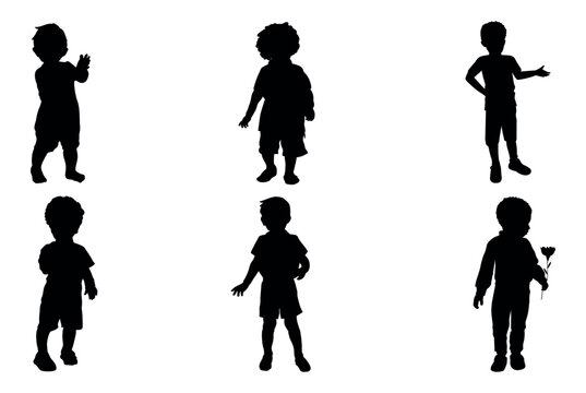 set of silhouettes of boys in different movements