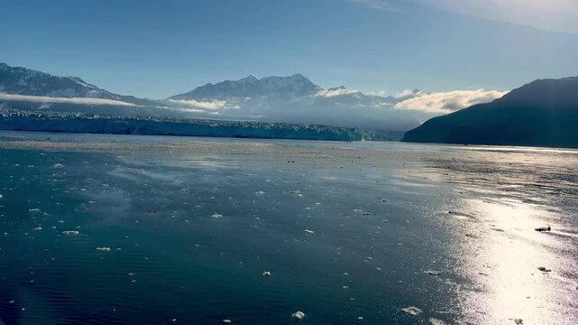 A view of the end of the Hubbard Glacier from  Disenchartment Bay stretching into Russell Fjord, Alaska in summertime