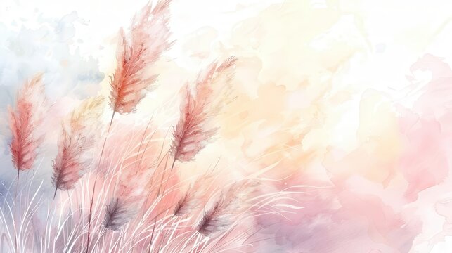 delicate pampas grass in soft watercolor hues wedding invitation element decorative illustration