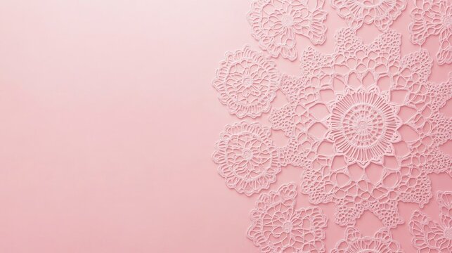 Photo of, Pink background with intricate lace texture and delicate cherry blossom motifs in pastel hues for design, banner template