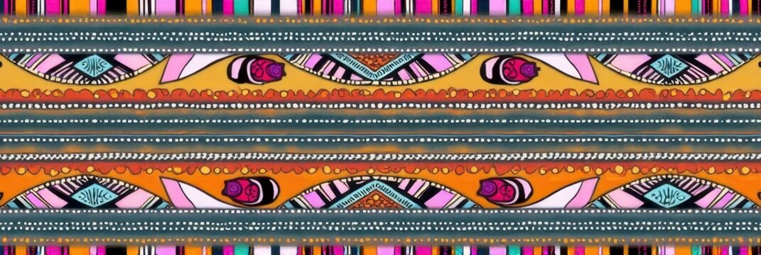 Colorful abstract pattern with geometric and tribal motifs in vibrant hues