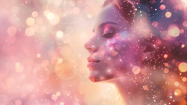 Soft pastel hues combined with sparkling powder creating a whimsical double exposure background