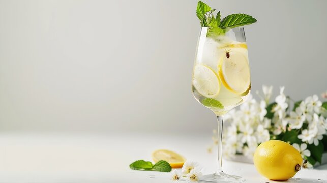 Hugo Spritz Cocktail Made with Sparkling Wine Lemon Mint and Elderflowers Syrup : Generative AI
