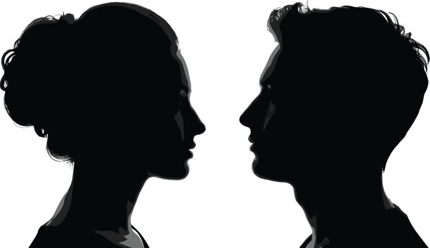 Male and female silhouette profiles, side view portrait illustration, black and white face outlines, human profile artwork for creative design use