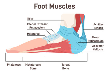 Foot muscles and tendons. Anatomy of leg and foot, human