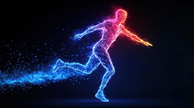 Digital human figure with binary code illustrating physiotherapy technology