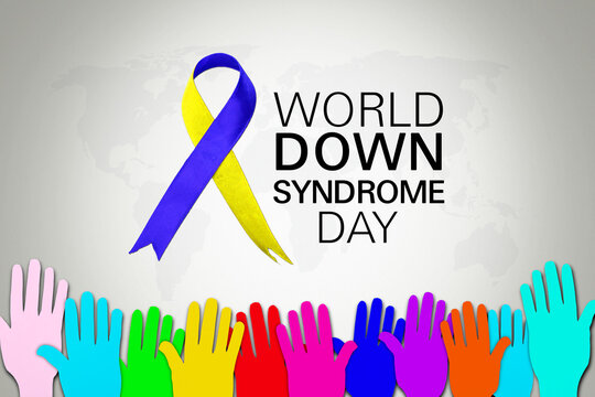 World down syndrome day text with colorful hands