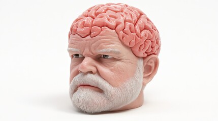 Cartoon style brain on an angry elderly mans head, emphasizing humor and cognitive challenges in aging with exaggerated expressions