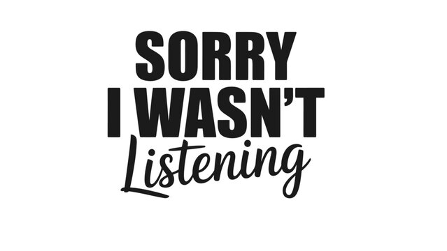 A humorous sign that says sorry I wasn't listening in bold letters