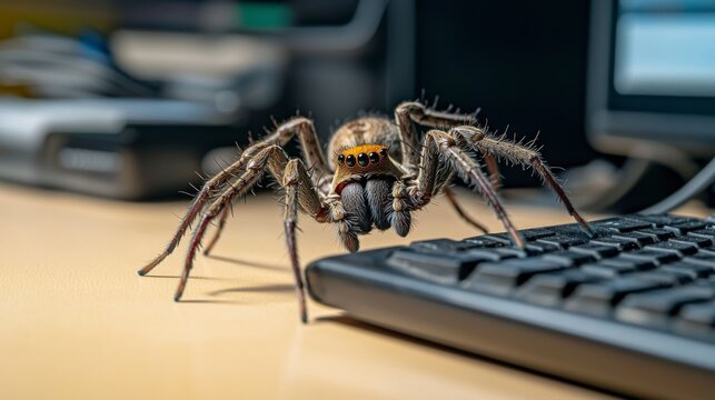 Coworker plays prank with fake spider on desk during office day business environment humor concept