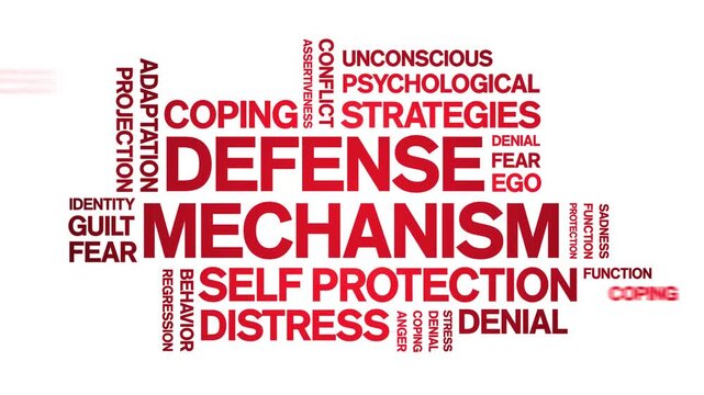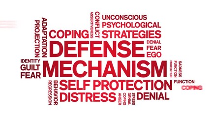 Defense Mechanism animated word cloud-text design animation tag kinetic typography seamless loop.