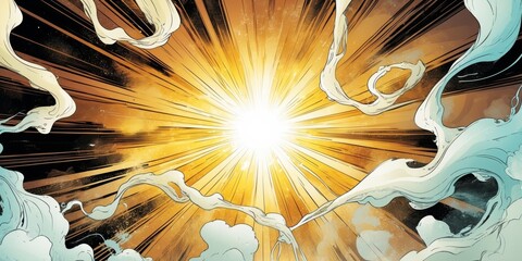 sunburst light smoke comic art style background.