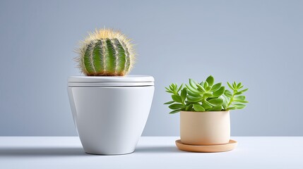 Cactus on closed toilet symbolizing pain and discomfort, humorous metaphor for hemorrhoids or constipation, minimal pastel setting