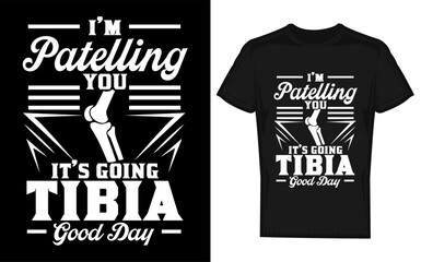 Humorous doctor pun featuring a silhouette of a tibia bone with a playful positive message about a good day perfect for medical professionals and healthcare settings