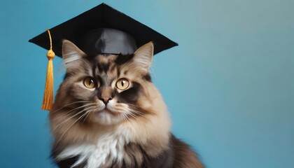 Graduating cat with diploma and cap