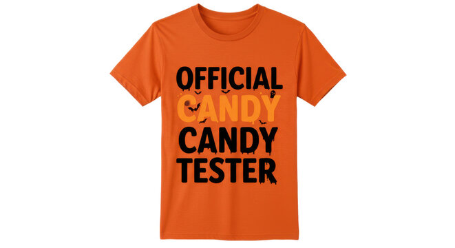 Bright orange t-shirt with bold text declaring 'Official Candy Tester', ideal for fun events