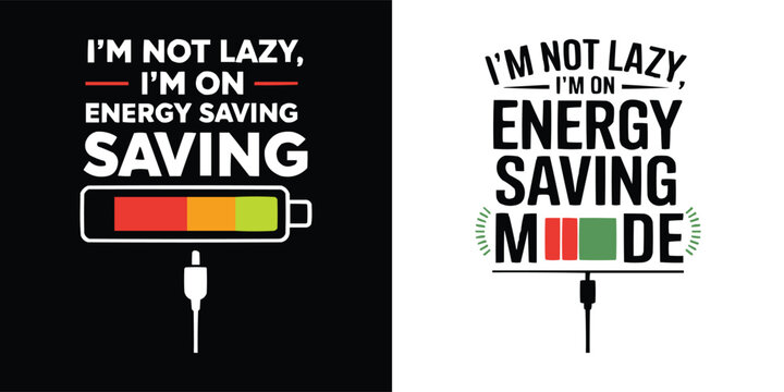 m not lazy 'm on energy saving mode funny typography design with colorful battery icon for humorous t shirt and poster art