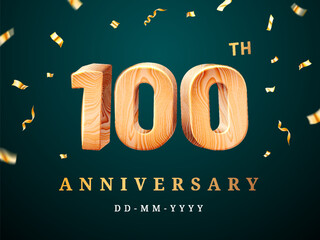 One hundredth anniversary. Gold and black numbers. Poster template for 100th anniversary celebration. Vector illustration.