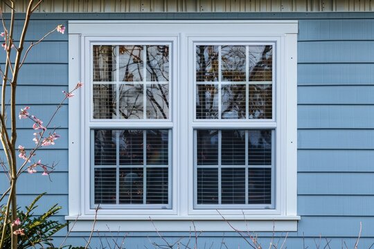 Elegant Double Hung Window with Vinyl Siding and White Grilles Dividing Sash - Perfect for Colonial
