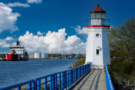 A lighthouse and jetty on Lake Erie in Huron, Ohio