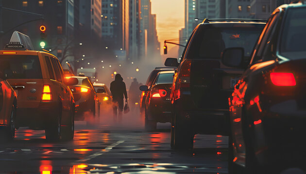 A dynamic image capturing the hustle and bustle of city life during rush hour, generative ai