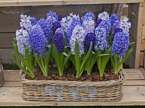 Hyacinthus orientalis ornamental beautiful springtime flowering plant, group of colorful bright flowers in bloom