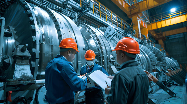 Portrait of engineer wearing yellow vest and white helmet with laptop computer Working day on a water dam with a hydroelectric power plant. Renewable energy systems, Sustainable energy concept