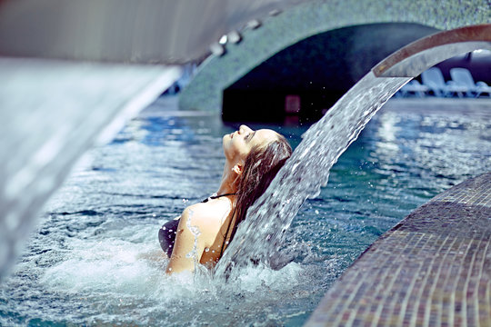 Relaxed woman enjoying in hydrotherapy while spending a day at health spa