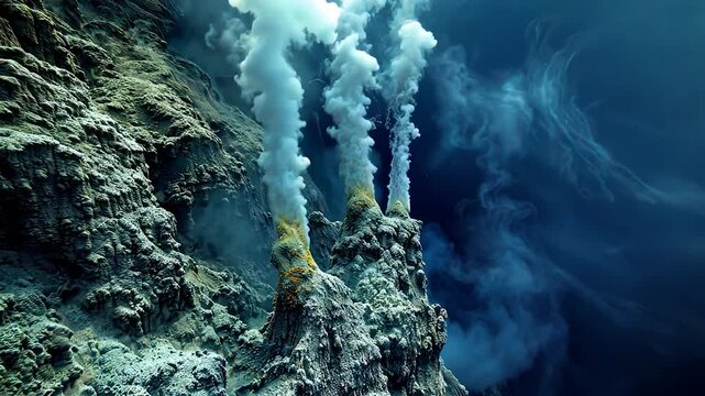 Deep ocean hydrothermal vent erupting hot mineral water, undersea volcanic activity, background
