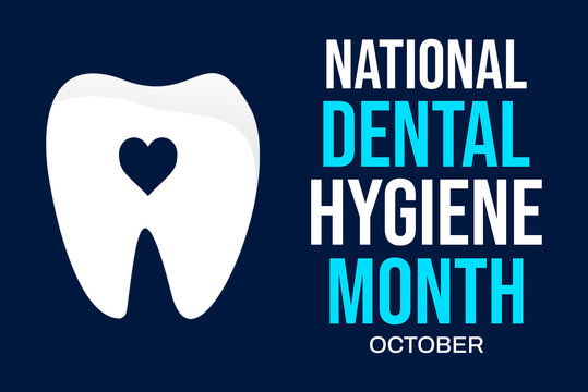 National Dental Hygiene Month background design with teeth and typography on the side. October is observed as dental hygiene month, backdrop