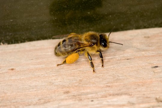 Honey Bee, apis mellifera, Adult with Pollen Baskets, Bee Hive in Normandy