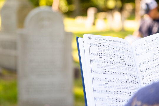 Hymnal with gravestones in background