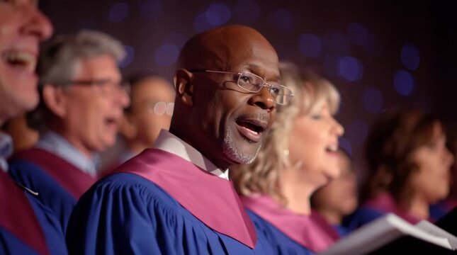 Church choir is singing gospel - religious music in a group with people expressing their hallelujahs and amens via musical artistry