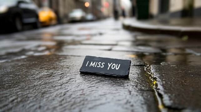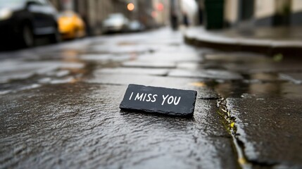 i miss you message card handwriting on blue diary book with white flowers frangipani ,jasmine arrangement  flat lay style on background wooden