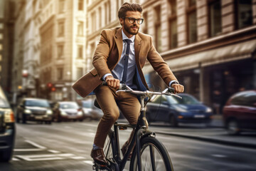 Stylish businessman riding bicycle on street