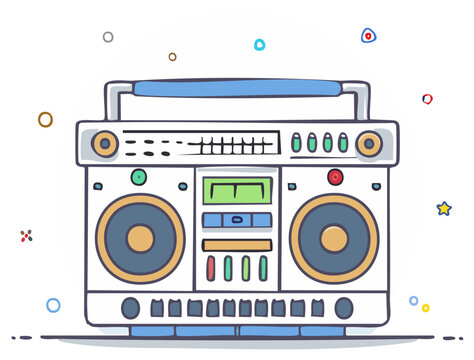 Colorful retro boombox surrounded by vibrant abstract lines