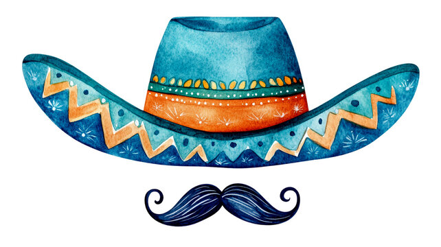 A black mustache moustache set against a plain white background, highlighting its bold and classic appearance.