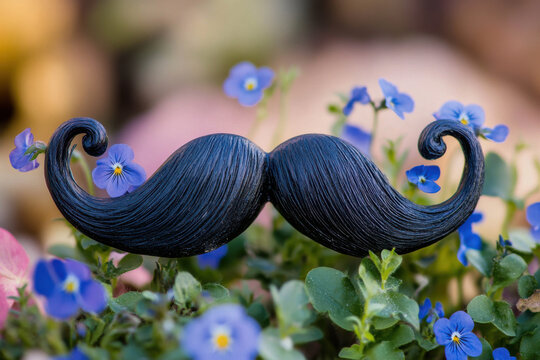 A mustache with tiny flowers blooming from its curls, adding a whimsical touch