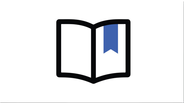 Open book with blue bookmark graphic