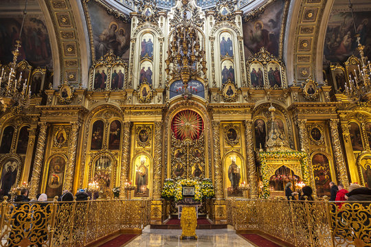 The Cathedral of the Epiphany in Yelokhovo, the iconostasis. Moscow, Russia