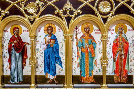 Manasija orthodox monastery near Despotovac, Serbia. Detail of the church iconostasis