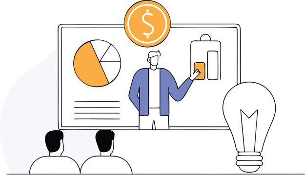 Dynamic Isometric Business Training vector Illustration: Interactive Learning, Data Analysis, and Idea Generation with Diverse Professionals