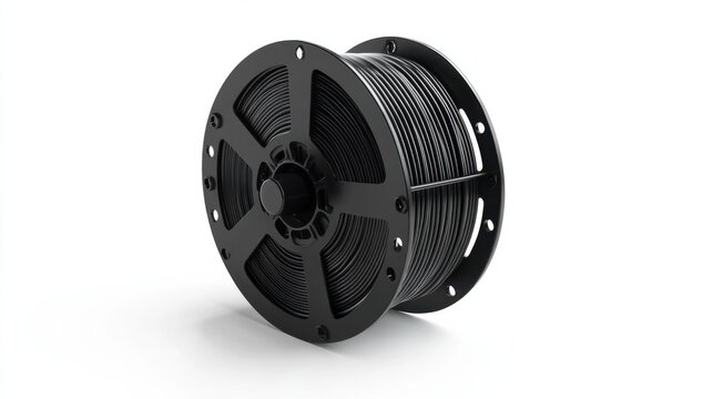 Electric cable reel with a black cord, isolated on a clean white background, ideal for extension needs