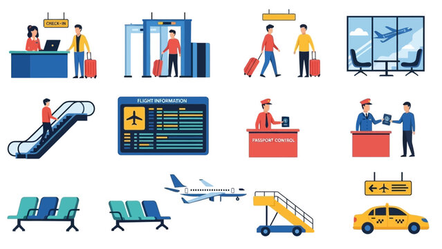 Set of vector illustrations of male traffic police officers managing vehicle flow, ideal for road safety education, transportation materials, and public guidance content