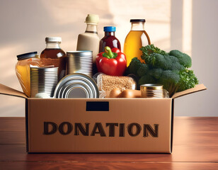 Food Donation Box- A scene depicting a cardboard box filled with donated food items, ideal _1(203)