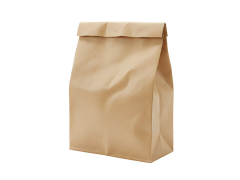 A clean, high-resolution image of a brown paper lunch bag with a neatly folded top, isolated on a transparent background (PNG), ideal for eco-friendly packaging designs, product mockups, food delivery