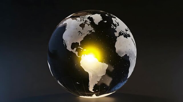 Animated globe showing various continents with a glowing core, ideal for travel promotion