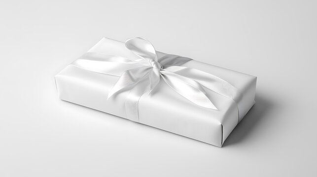 Wrapped gift box with satin ribbon isolated on pure white ideal for festive marketing